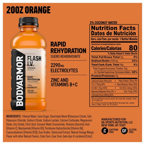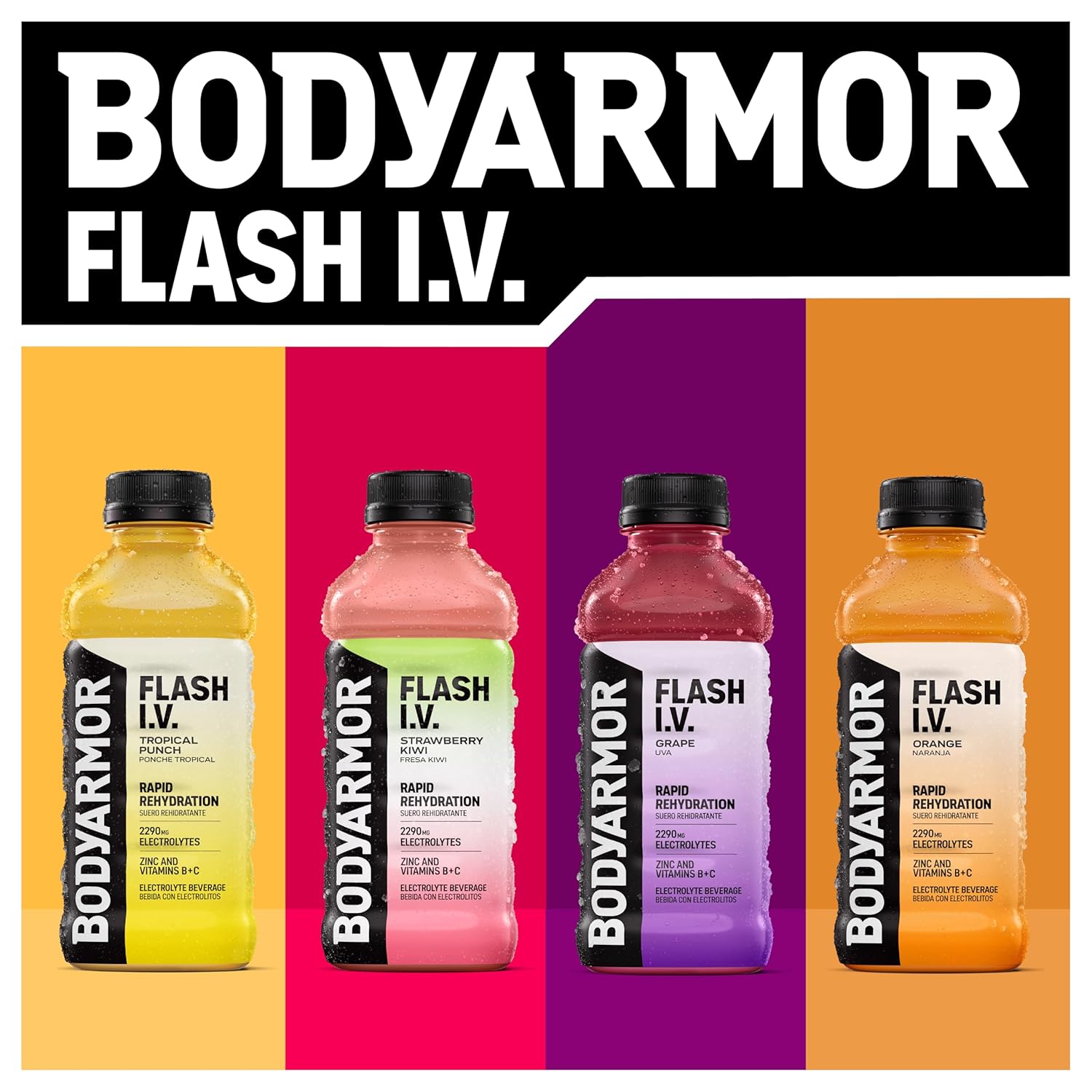 - BODYARMOR Flash I.V. electrolyte drink delivers rapid rehydration. whether you’re post-workout or sweating in the sun