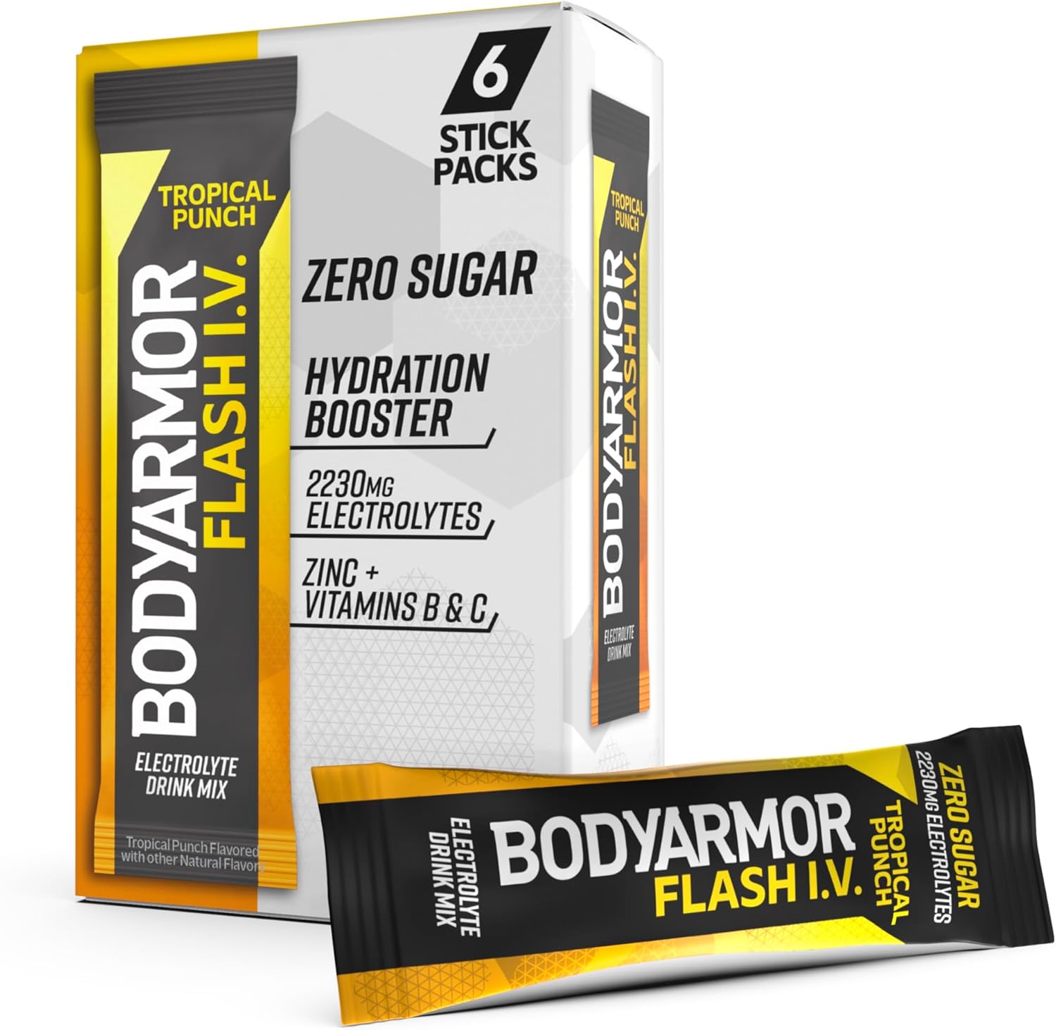- Elevate your water game with BODYARMOR Flash I.V. electrolyte powder sticks. the ultimate on-the-go hydration booster expertly crafted for your active lifestyle