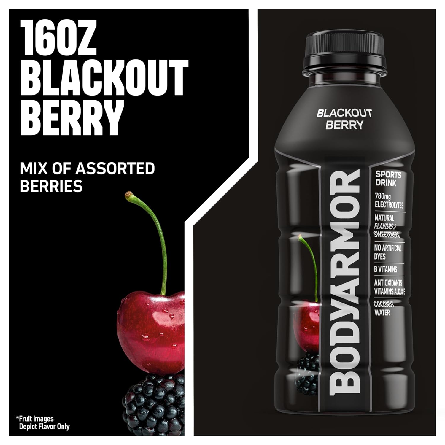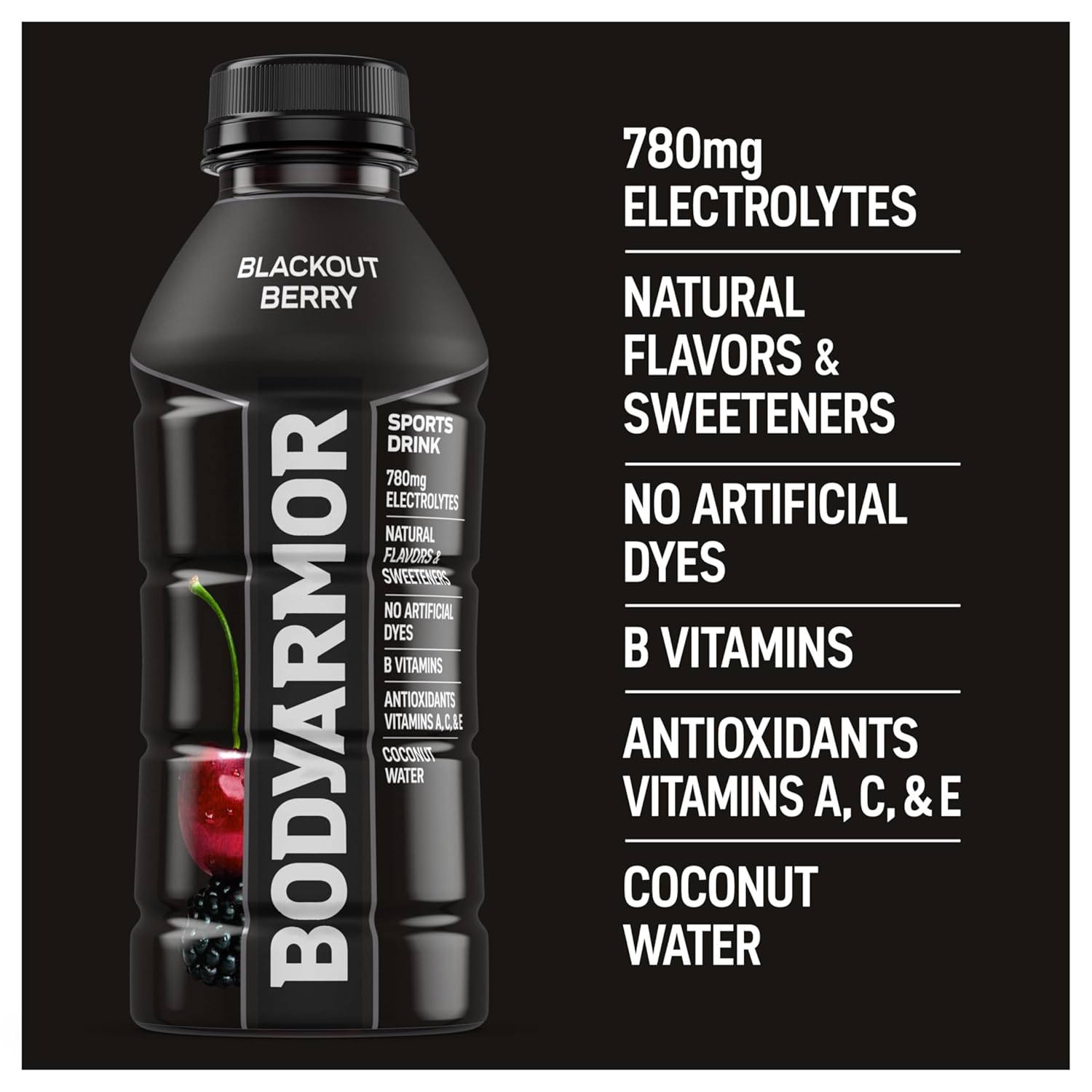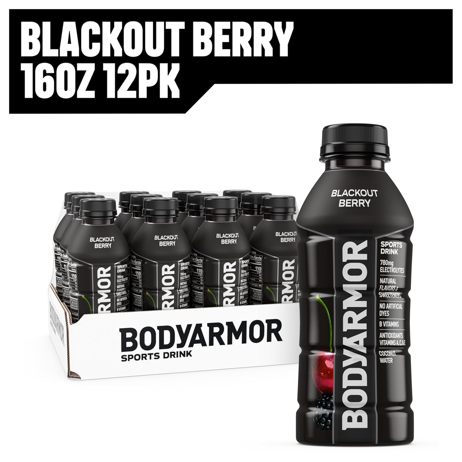 - 12 pack. 16 fl oz bottles of BODYARMOR Sports Drink Blackout Berry ?? hydration’s MVP