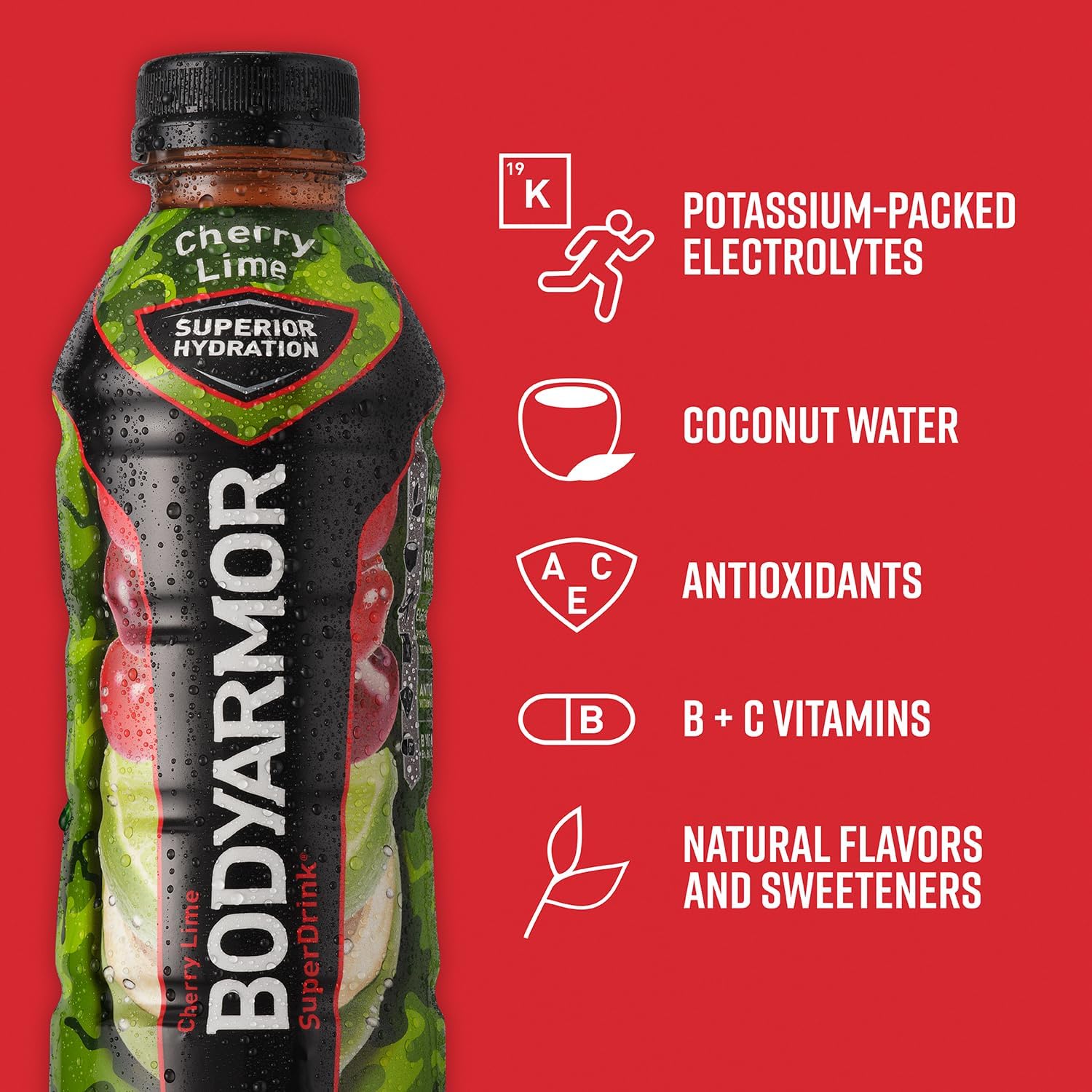 - 12 pack. 16 fl oz bottles of BODYARMOR Sports Drink Cherry Lime ?? hydration’s MVP