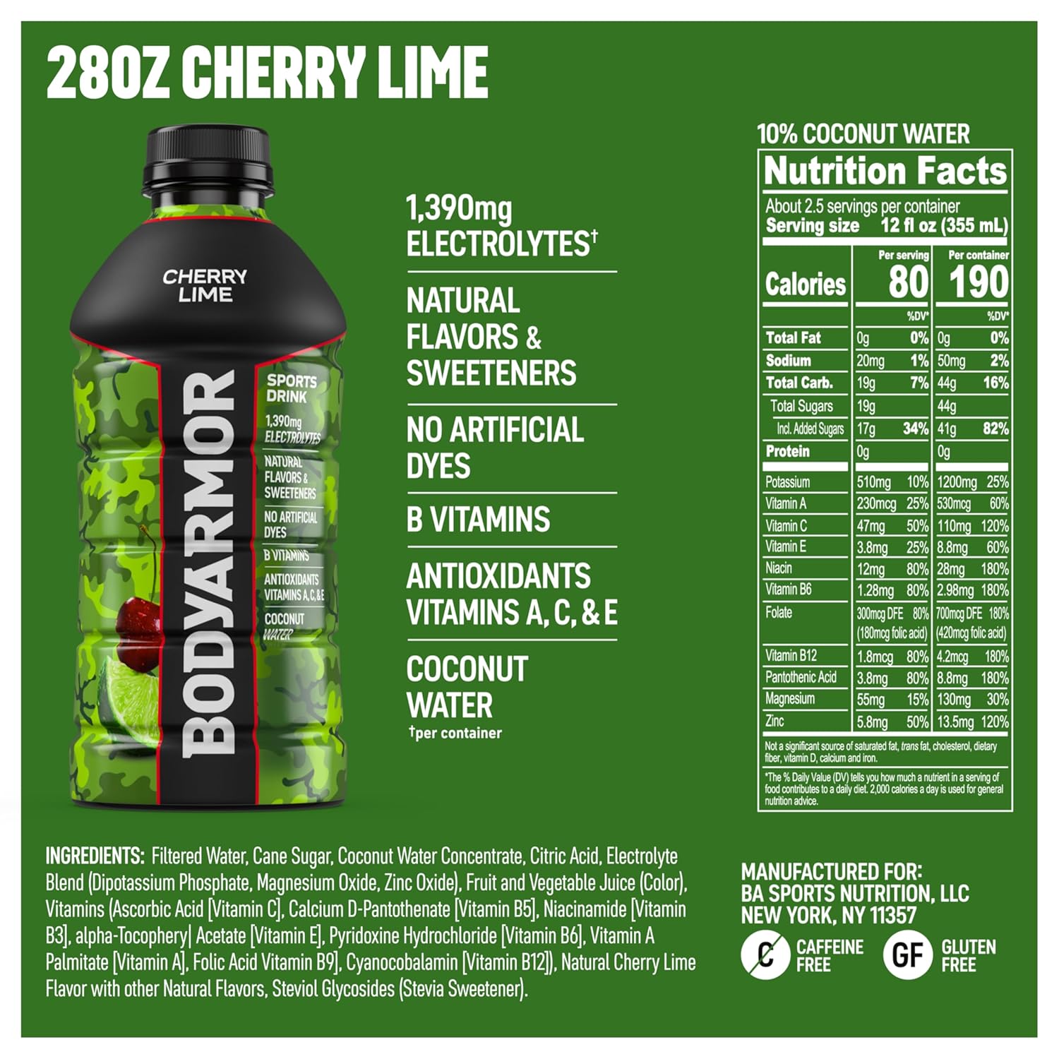 - 15 pack. 28 fl oz bottle of BODYARMOR SuperDrink Cherry Lime ?? hydration’s MVP