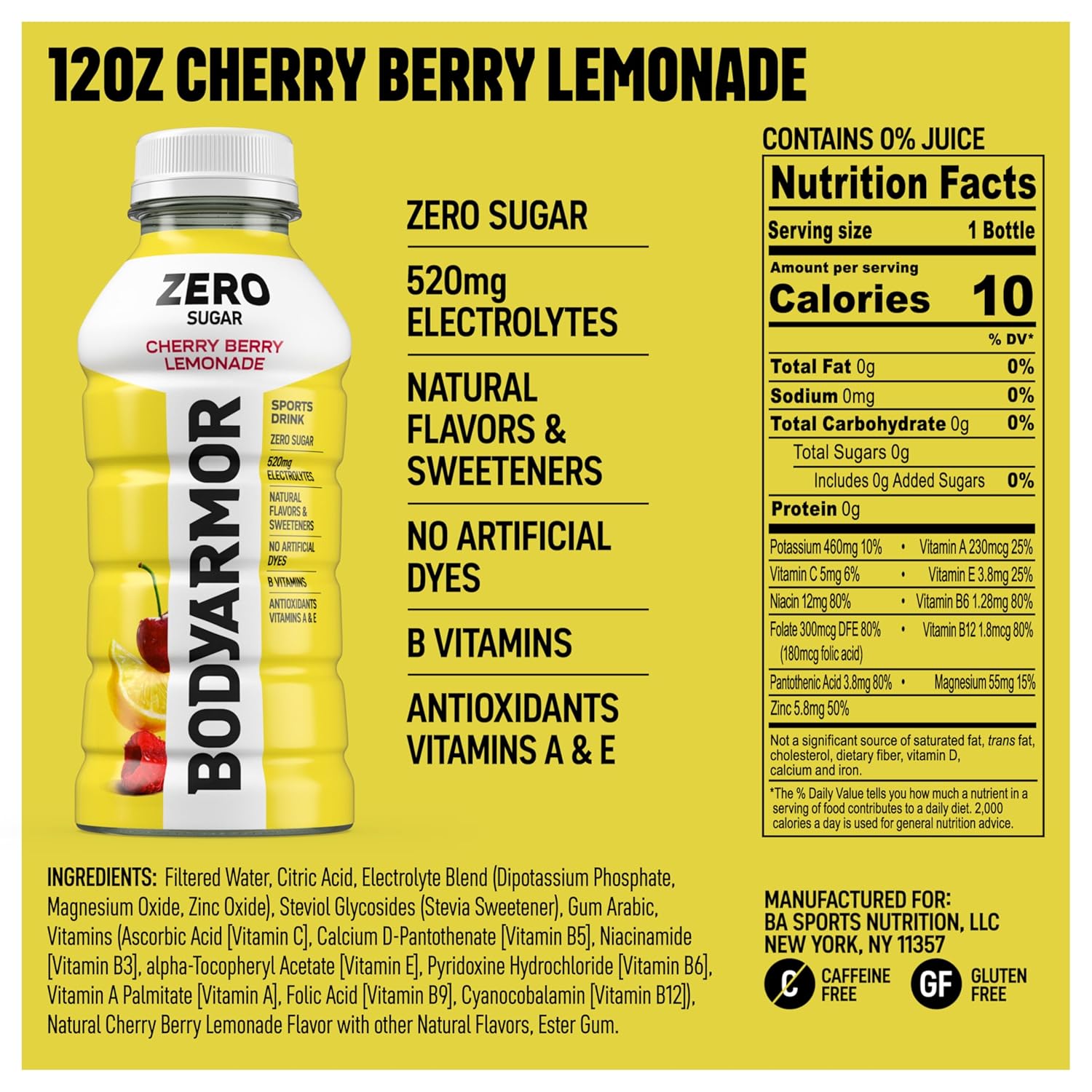 BODYARMOR ZERO Sugar Cherry Berry Lemonade.