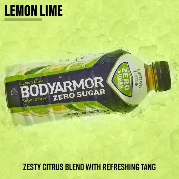 - 12 pack. 28 fl oz bottles of BODYARMOR Zero Sugar Lemon Lime electrolyte drinks to refresh your relentless drive all day. every day
