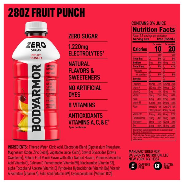 - BODYARMOR Zero Sugar is the better-for-you sports drink that powers you up with zero sugar and zero carbs